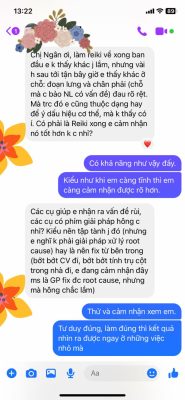 Lúc làm Reiki bạn ấy chỉ ngủ say thôi, mãi đến hôm sau mới nhắn lại mình là lúc về nhà bạn mới cảm nhận được rõ cơn đau ở các vị trí mình nói.